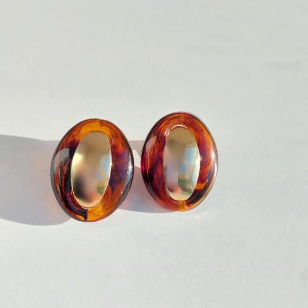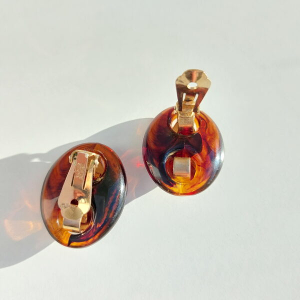 Клипсы винтажные в сплаве золотого тона. Клипсы овальной формы состоят из коричневого, прозрачного пластика с металлическими вставками в золотом тоне. В хорошем винтажном состоянии, присутствуют сходы. Маркированы Napier pat. pend.