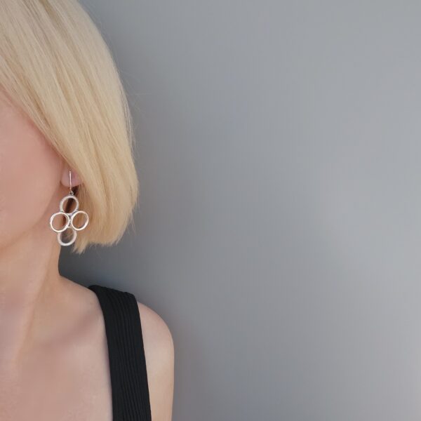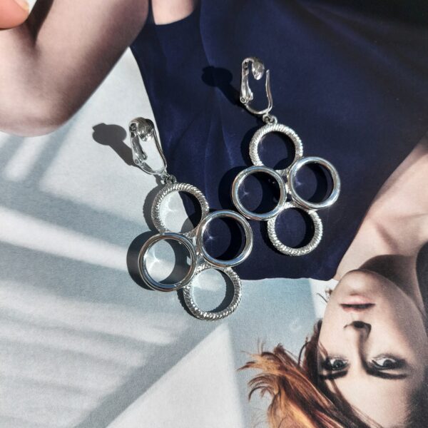 Клипсы винтажные в сплаве серебряного тона. Длинные клипсы округлой формы, состоят из четырех колец. Интересные клипсы в хорошем винтажном состоянии. Маркированы Sarah Coventry на зажимах.