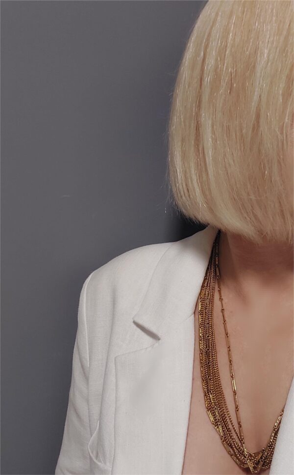 Колье винтажное в сплаве золотого тона. Состоит из множества цепочек различной длины, красиво смотрится в зоне декольте. В хорошем винтажном состоянии. Без маркировки.